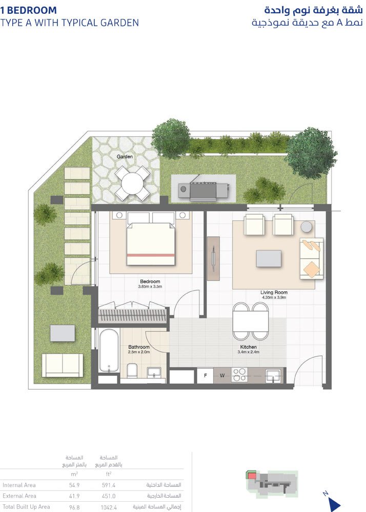 1 Bedroom - 1 Bedroom ,Type-A ,Typical-Garden ,Size-1042.4-Sq-Ft 1042.40 Sq Ft Apartment