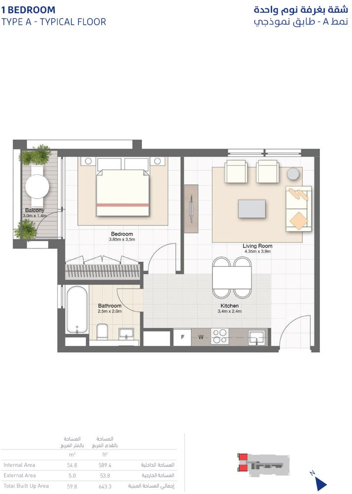 1 Bedroom - 1-Bedroom, Type-A ,Typical-Floor ,Size-643.3-Sq-Ft 643.30 Sq Ft Apartment