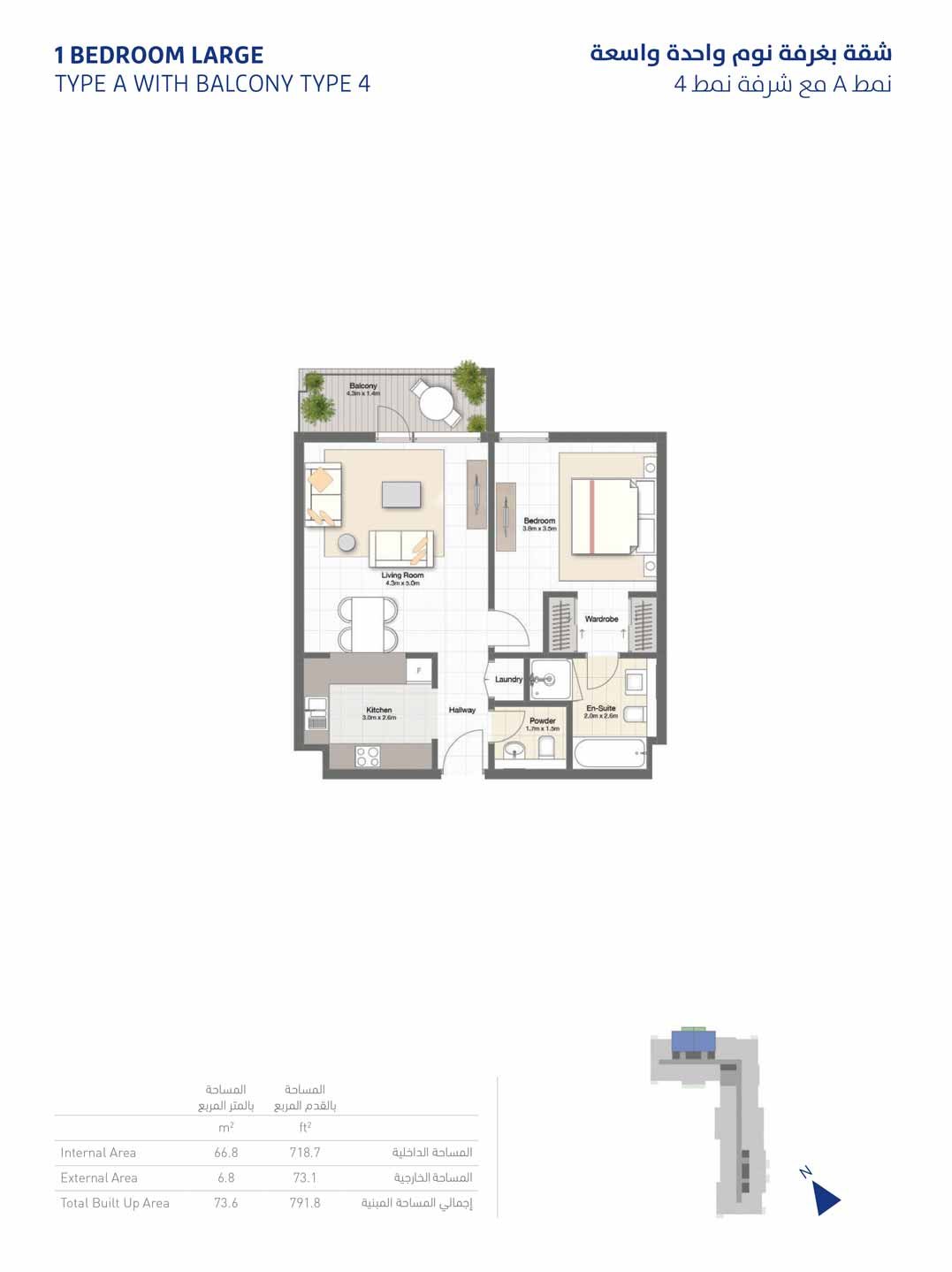 1 Bedroom - 1 bedroom-Large-type-A-balcony-type-4-791 791.00 Sq Ft Apartment