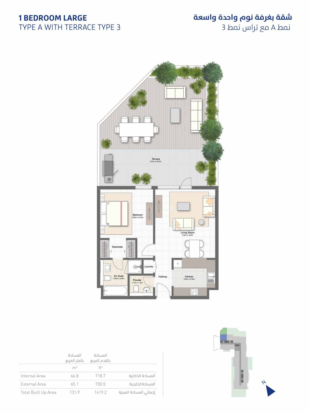 1 Bedroom - 1 bedroom-Large-type-A-terrace-type-3-1419 1419.00 Sq Ft Apartment
