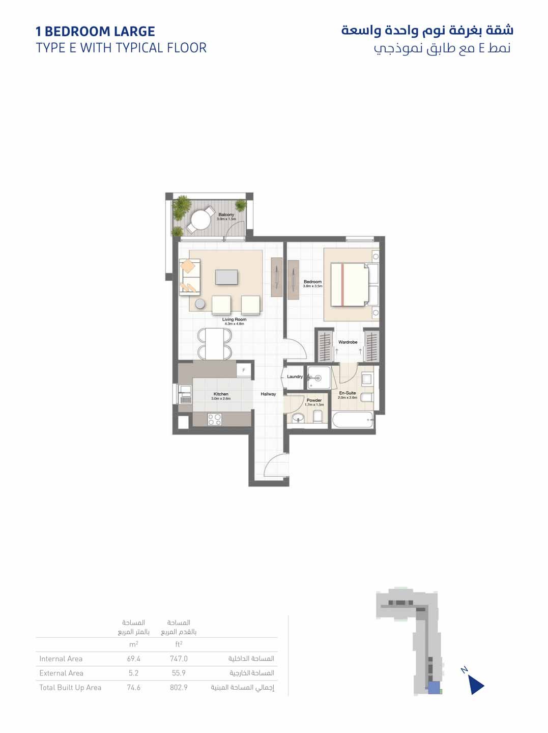 1 Bedroom - 1 bedroom-Large-type-E-802 802.00 Sq Ft Apartment