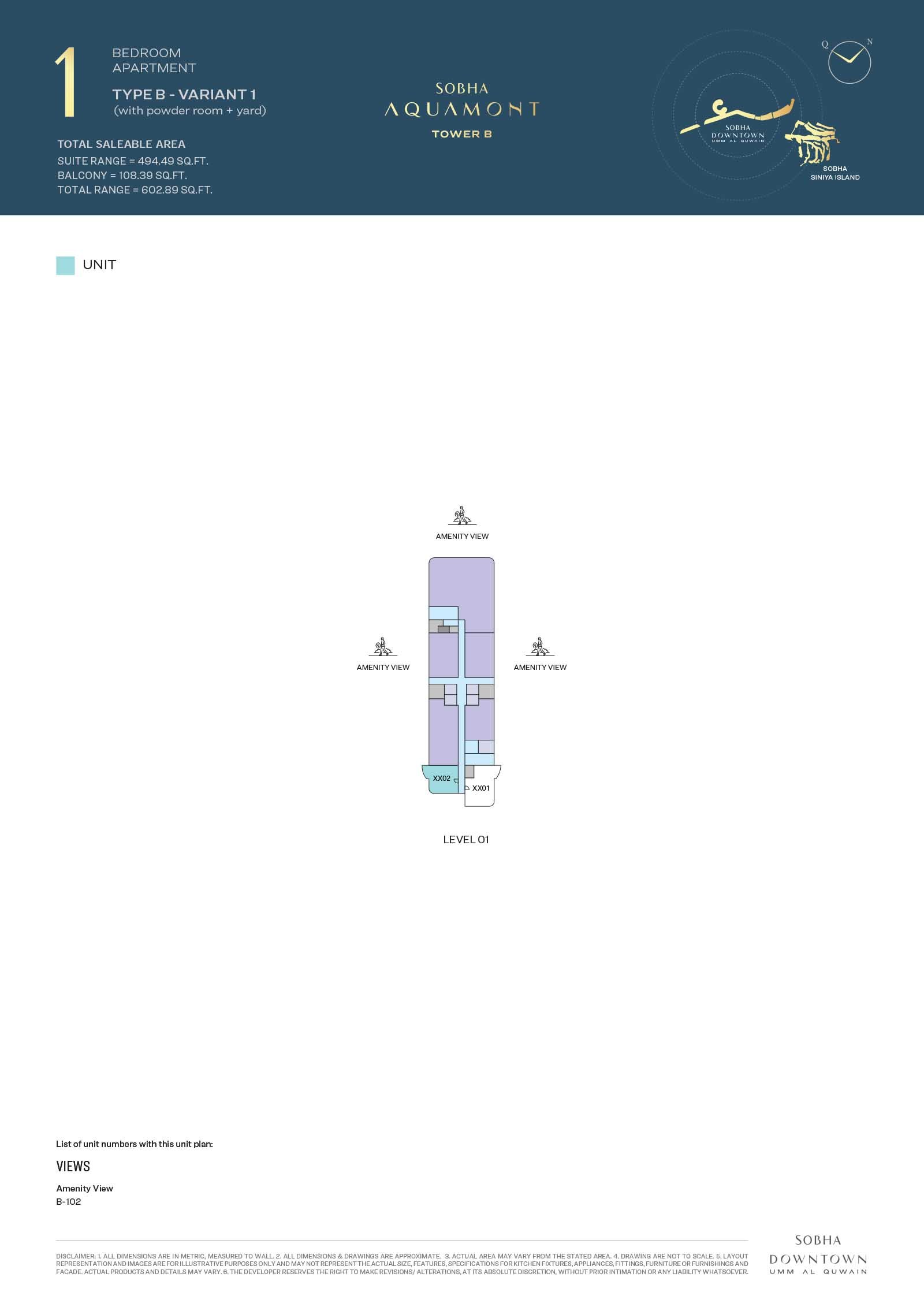 TOWER B | - | LEVELS 01 TYPE B-VARIANT 1 | 602.89 Sq Ft | Apartment |